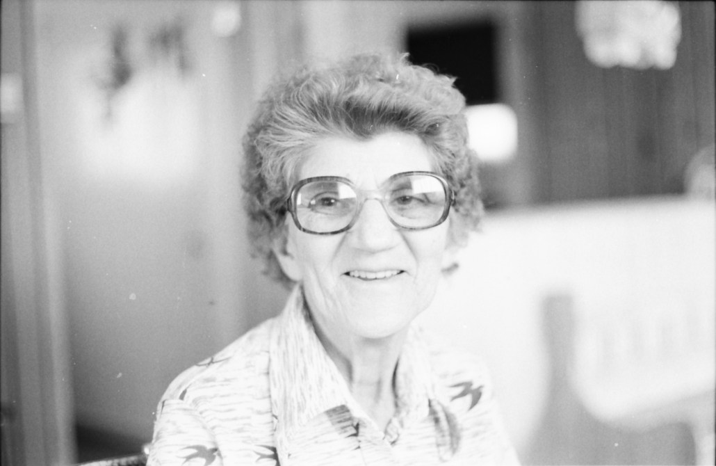 Virginie Chiasson (née Doucet), chez elle à Saint-Sauveur en 1977