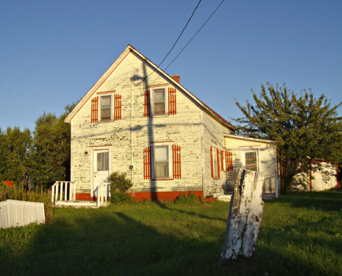 Maison anciennement occupée par Marianne Brideau, chanteuse enregistrée en 1955-1956 par Luc Lacourcière, à Val-Comeau. Inoccupée depuis son décès, elle était devenue propriété de sa fille, Myna Ferguson. Vivian et Robert l’ont louée lors des étés 1977 et 1979.